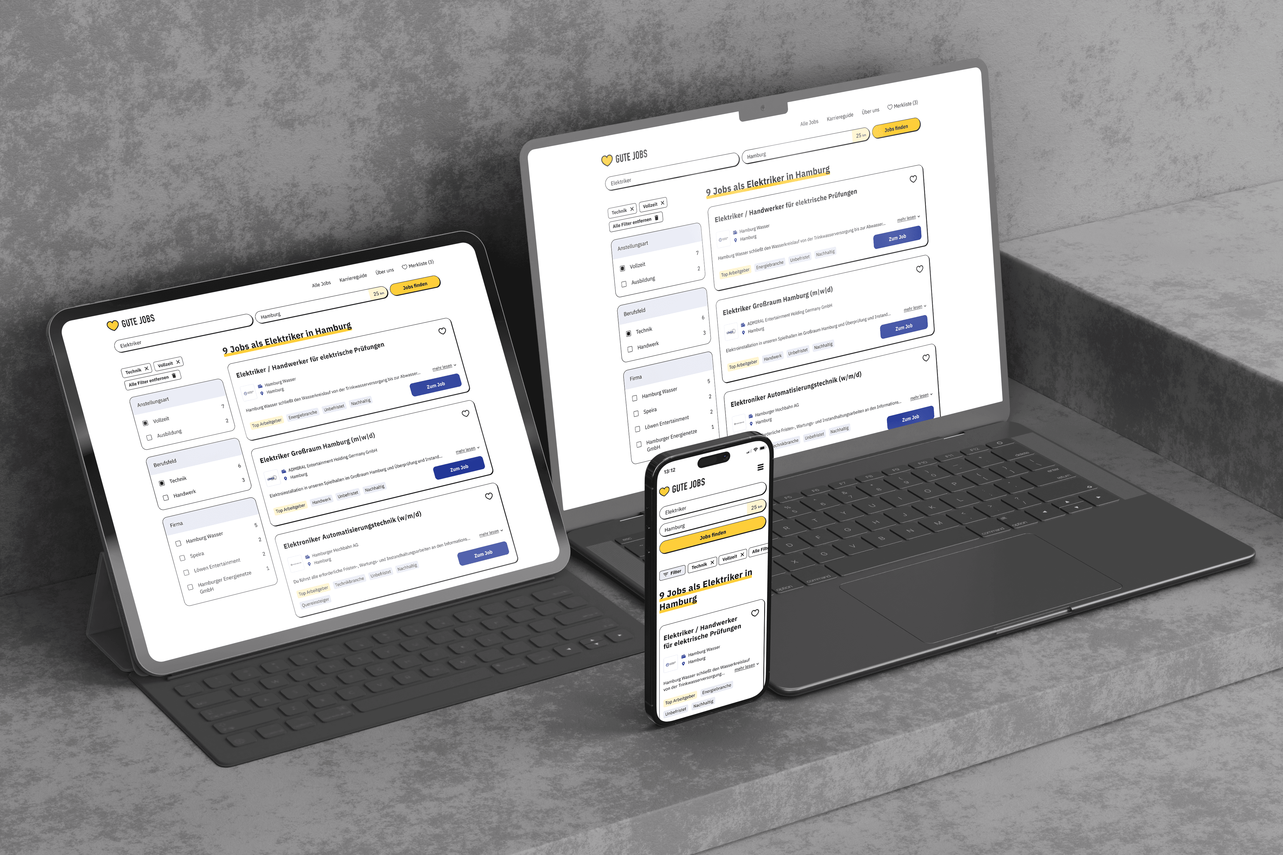 Komplettes Redesign von Gute-Jobs: Konzept, Brand-Strategie, Atomic Design Library und finaler Developer-Handoff.