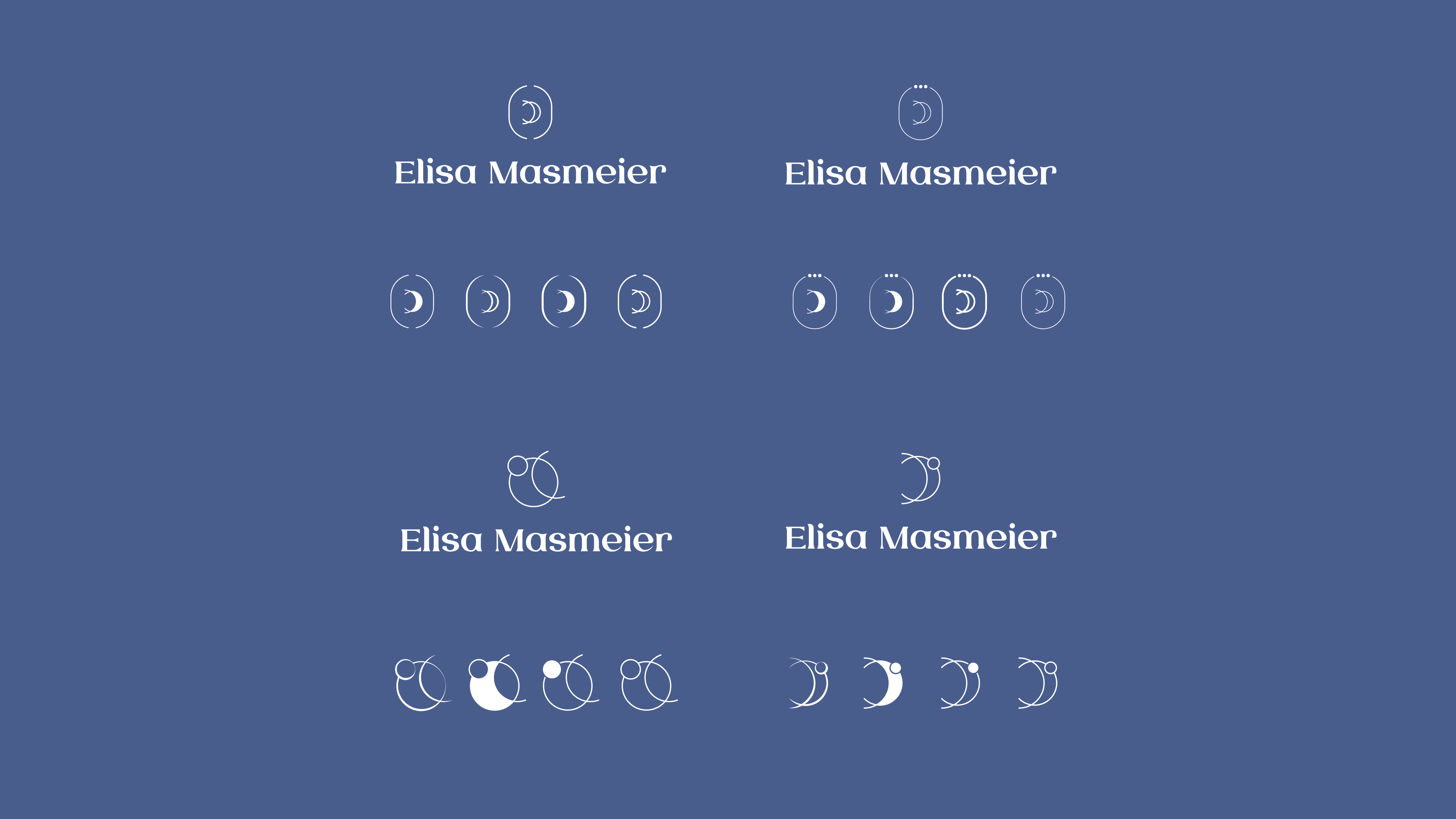 Im nächsten Schritt habe ich die ersten Entwürfe in einem Call präsentiert, jeweils als Kombination aus Wort- und Bildmarke. Ziel war, eine klare Stilrichtung festzulegen. Das Mond-Symbol und ein minimalistischer, linienhafter Stil gefielen besonders gut, daher habe ich daraufhin weitere Varianten in dieser Richtung entwickelt.